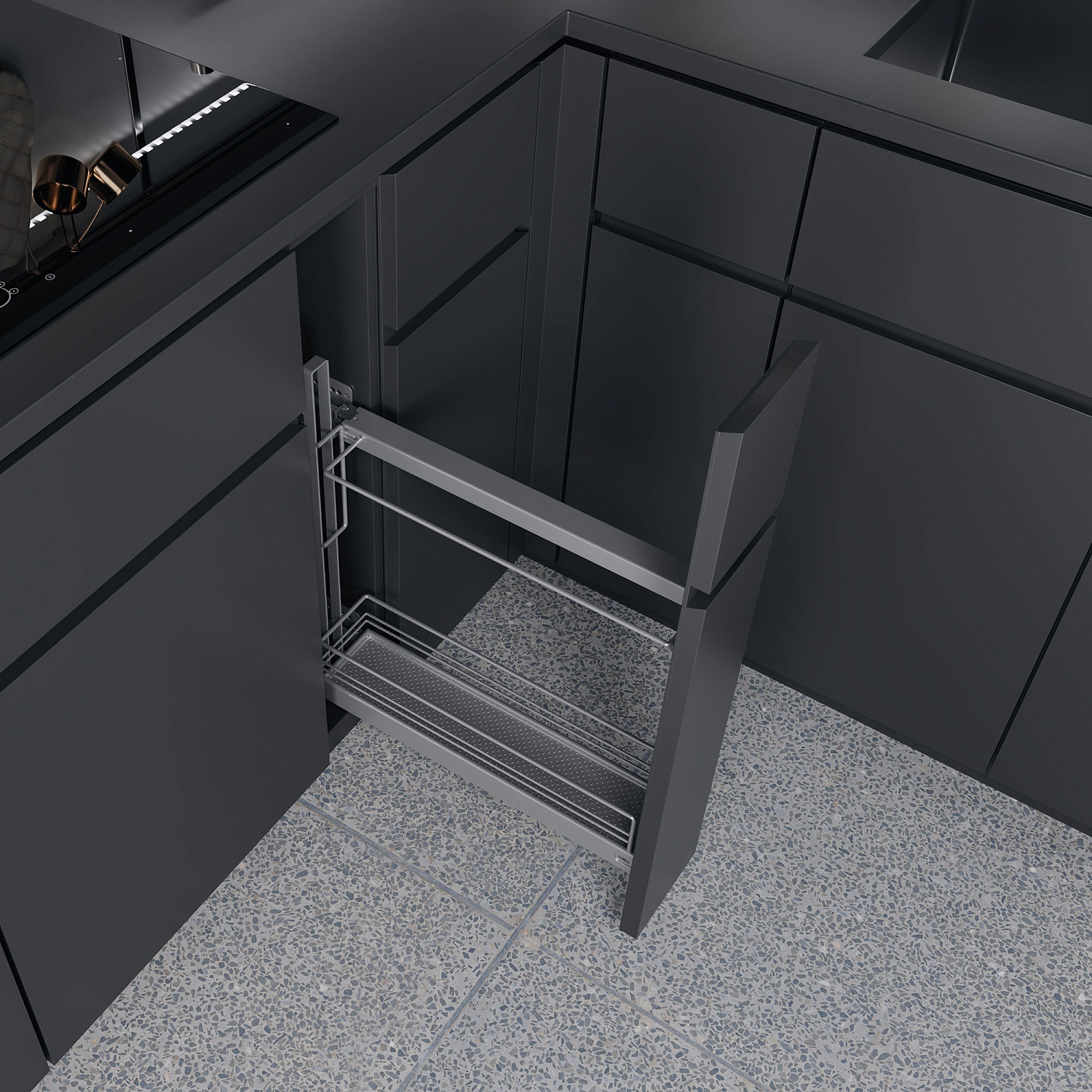Бутылочница для противней №15 H 542 фасад 150 мм 3D