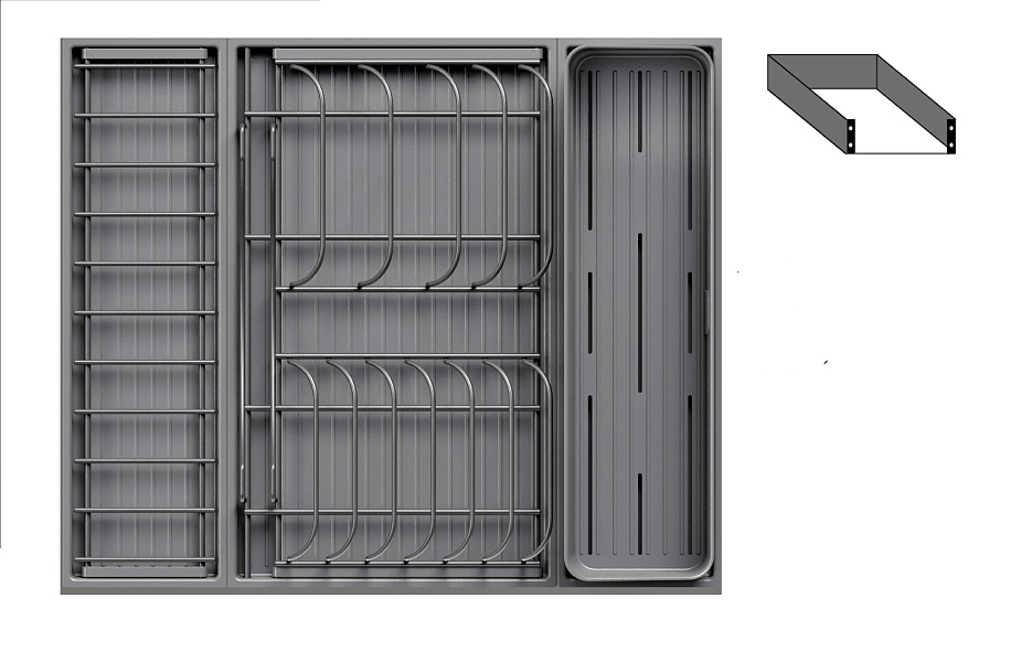 1 модуль для посуды большой (423 x 248 мм, состоит из 1 х держатель металлический, 1 х поддон пластиковый, 2 х защелка-ограничитель)
