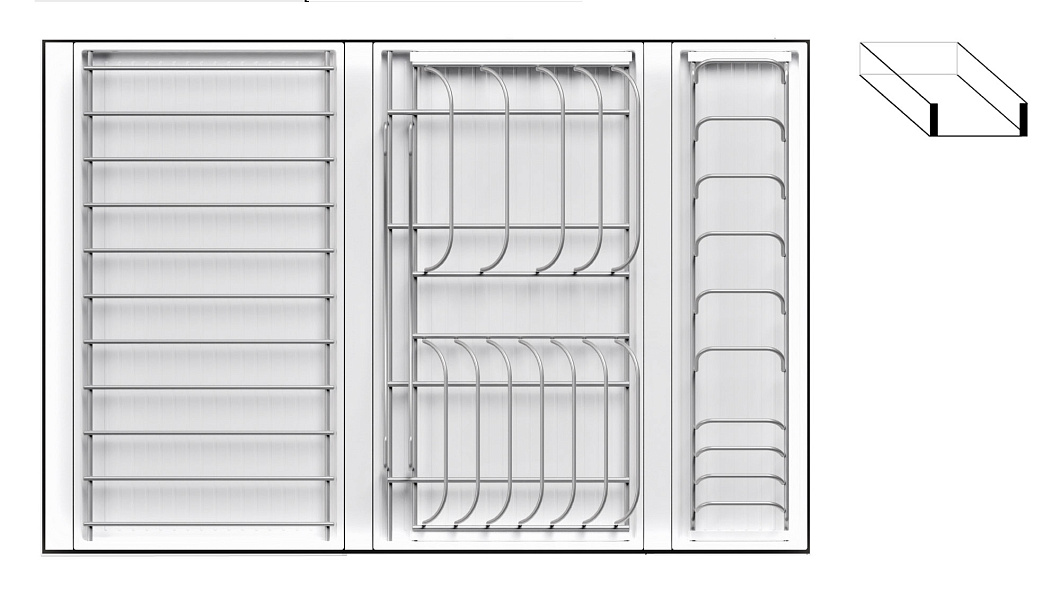 1 для посуды большой (423 x 248 мм, состоит из 1 х держатель металлический, 1 х поддон пластиковый, 2 х защелка-ограничитель)