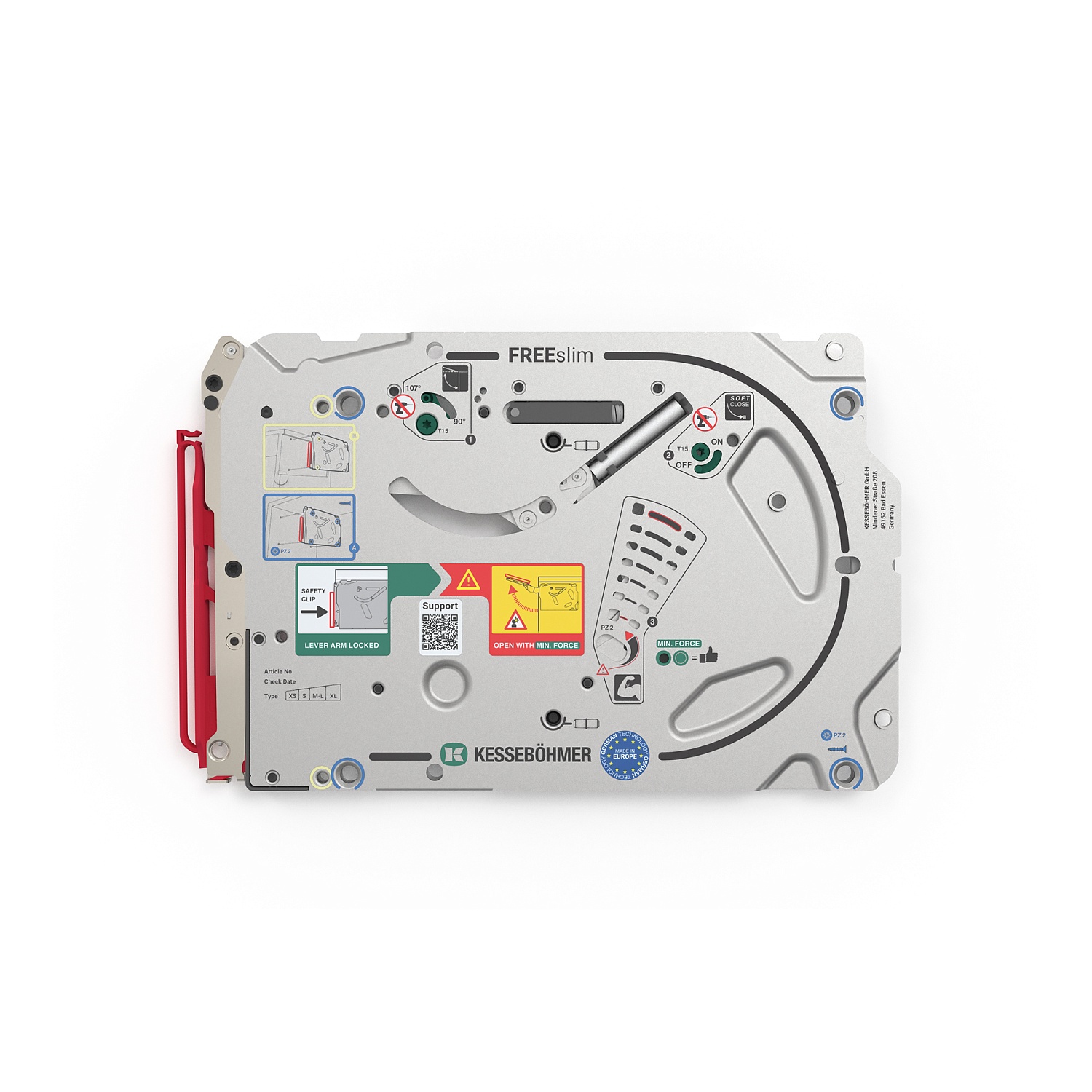 Полный комплект ультратонкого подъемного механизма ФриСлим ФЛАП Kesseböhmer с доводчиком для врезного монтажа, цвет СЕРЫЙ