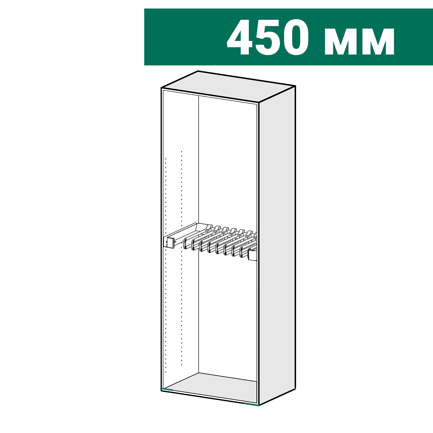 Особенность этого способа хранения заключается в инновационной системе, которая обеспечивает легкий доступ к вещам, позволяя полностью выдвинуть механизм и снять каждую вешалку отдельно.